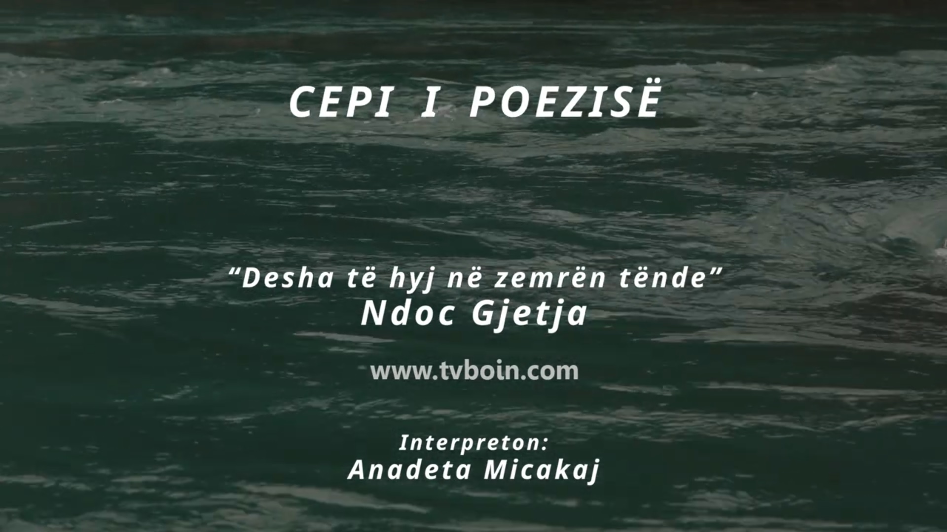 Talent Cepi i poezisë – “Deshta të hyj në zemrën tënde”/ Ndoc Gjetja 2 Maj, 2025 Share on Facebook Tweet on Twitter Ky publikim është mbështetur nga Ministria e Kulturës dhe Medias. / Fondi për nxitje të pluralizmit dhe shumëllojshmërisë të mediave /