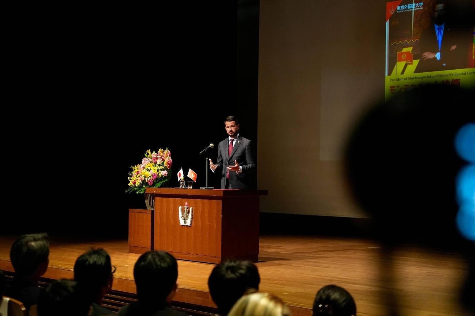 Në kuadër të vizitës së tij zyrtare në Japoni, Presidenti i Malit të Zi, Jakov Millatoviq, mbajti një ligjëratë në Universitetin e Studimeve të Huaja të Tokios, në të cilën morën pjesë më shumë se 400 studentë, gjë që konfirmon interesin e madh për Malin e Zi.