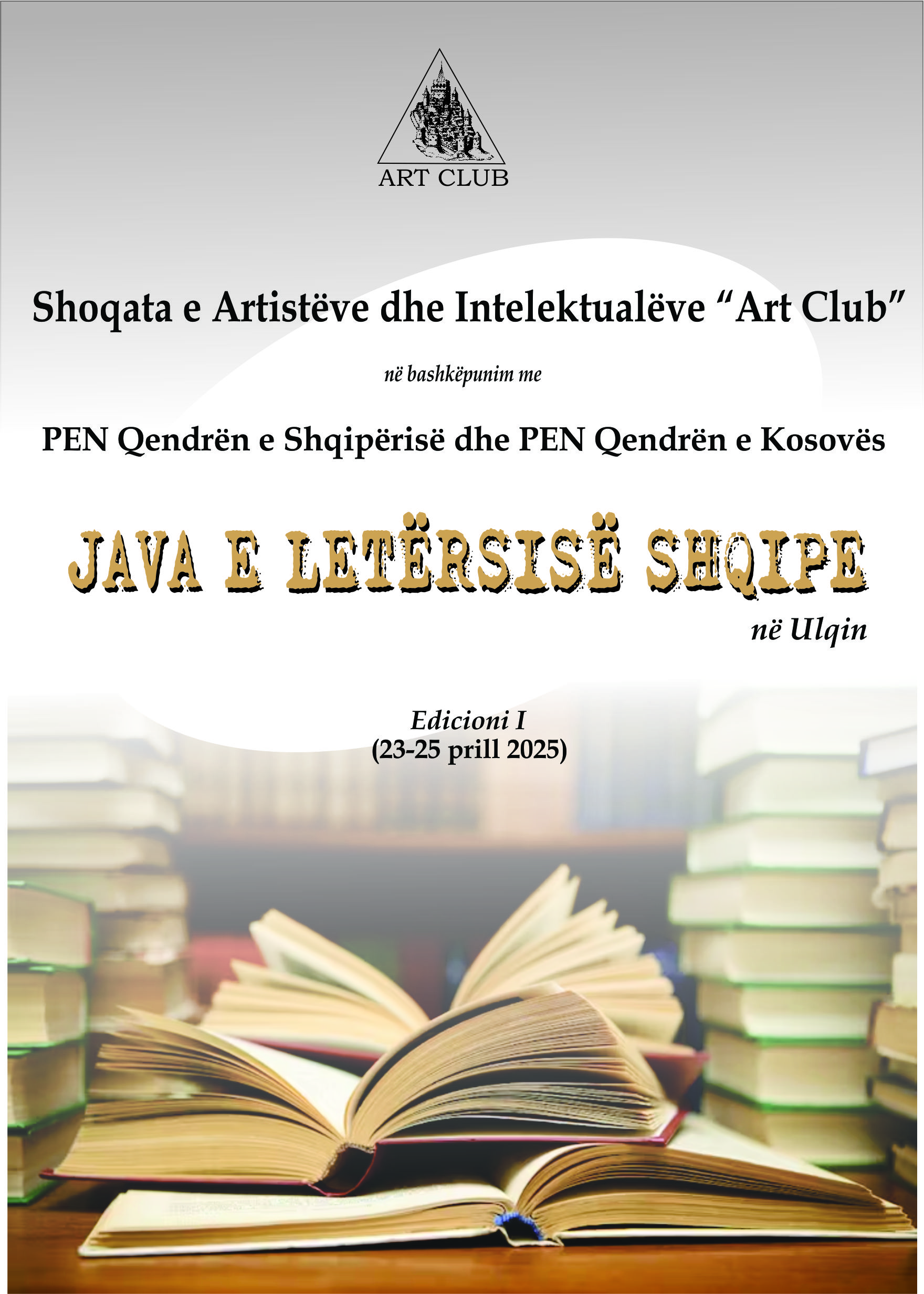 Shoqata e Artistëve dhe Intelektualëve “Art Club”, në bashkëpunim me PEN Qendrën e Shqipërisë dhe PEN Qendrën e Kosovës do të organizojnë në Ulqin më 23-25 prill 2025 edicionin e parë të manifestimit letrar “Java e Letërsisë Shqipe”.
