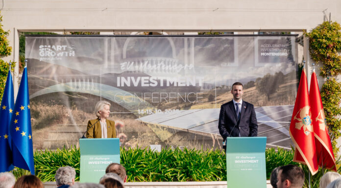 Në konferencën për shtyp në kuadër të Konferencës së Investimeve BE–Mali i Zi, kryeministri Millojko Spajiq dhe presidentja e Komisionit Evropian Ursula von der Leyen diskutuan për progresin evropian të Malit të Zi dhe projektet zhvillimore.